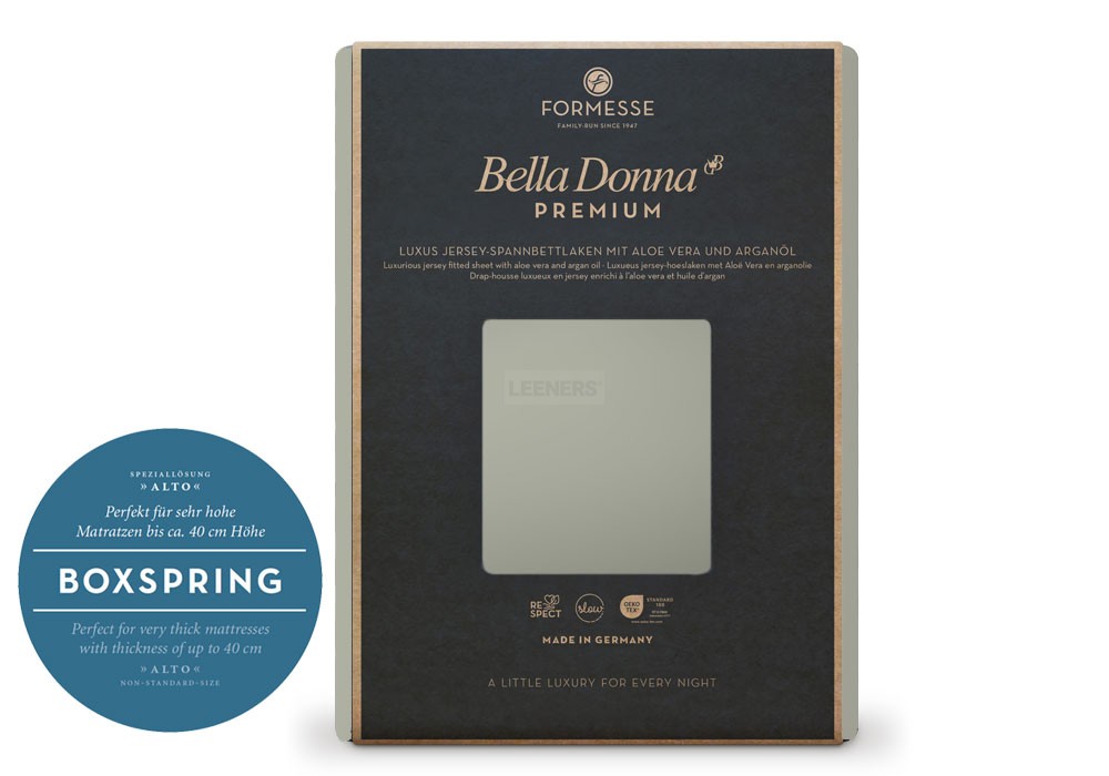 Die sorgfältige Veredlung mit den Pflegesubstanzen Aloe vera und Seidenproteine machen Bella Donna Premium zum Spannbettlaken, das Maßstäbe setzt. Einfach Premium. Bella Donna Premium.